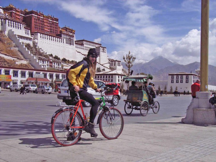 Die Reise begann mit einem Erfolgserlebnis: Unsere Fahrräder, die wir schon vorausgeschickt hatten, waren angekommen. Drei Tage haben wir uns dann akklimatisiert. Lhasa liegt 3700 Meter hoch, und schon die Hühnerleiter in unser Hotelzimmer mussten wir ganz schön hoch keuchen. Wir nutzten die Zeit für die Sehenswürdigkeiten der Stadt, insbesondere den Potala, weltberühmte ehemalige Residenz des Dalai Lama.