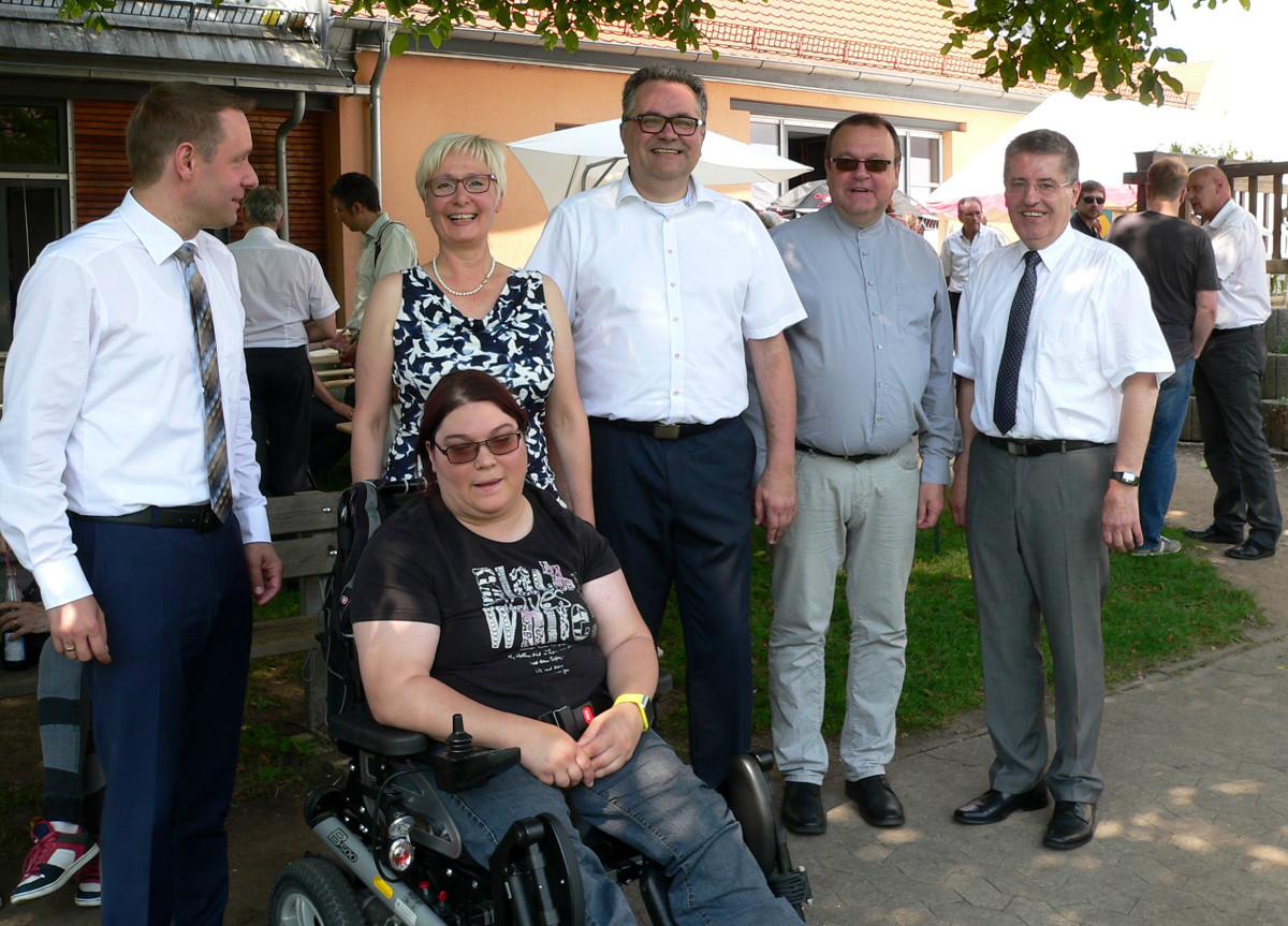 „Heute eröffnen wir ganz offiziell das Büro, in dem wir unsere Angebote der Kinder- und Jugendhilfe sowie der Behindertenhilfe vernetzen“, so Karl Schulz, Geschäftsführer der Rummelsberger Diakonie in seiner Ansprache. Er hieß die die Festgäste, die zur Eröffnung zweier neuer Angebote im Wilhelm-Löhe-Haus gekommen waren, willkommen. Kinder und Jugendliche, Mitarbeiter, Nachbarn und viele Ehrengäste saßen unter dem schattenspenden Nussbaum vor dem Kindercafé Kakau. Darunter Landrat Armin Kroder, Bürgermeister Erich Odörfer, Dekan Jörg Breu, Behindertenbeauftragte Angelika Feisthammel, Caritasgeschäftsführer Michael Groß, Dennis Kummarnitzky von der Lebenshilfe Nürnberger Land, Ingrid Schön, Koordinatorin für die offenen Angebote, Andreas Kasperowitsch, Martin Gmehl und Volker Deeg vom Wichernhaus Altdorf, Thomas Dietrich, Olaf Forkel, Thomas Bärthlein, Regionalleiter der Kinder- und Jugendhilfe, und Architekt Werner Fischer mit Team.