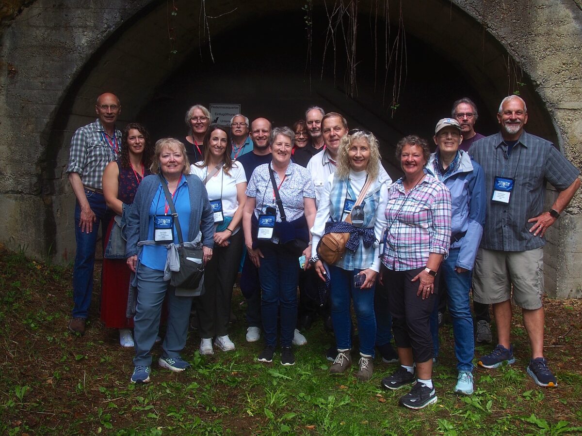 Der Bus fuhr zum Doku-Ort in Happurg, wo die Informationen in englischer Sprache großes Interesse fanden. Die unternehmungslustigere Hälfte der Gruppe machte sich auf den durch Nässe gefährlich glitschigen Weg zu den Stolleneingängen F und G des Doggerwerks.
