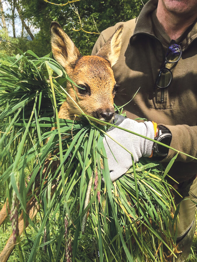 Jungtiere, wie junge Feldhasen, ducken sich in Sassen, Fasanenküken sitzen in Wiesen, Hecken- und Feldrainen, während Lerchen im niedrigen Gras brüten. Rehkitze und andere Jungtiere dürften dabei unter keinen Umständen angefasst, gestreichelt oder auf den Arm genommen werden, betont Kraus. Der menschliche Geruch, der anschließend an ihnen haftet, sei ihr Todesurteil: Die Rehgeiß würde ihren Nachwuchs nicht mehr annehmen. Das Kitz müsste verhungern oder sei seinen Fressfeinden ausgeliefert.