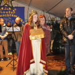 Direkt vor der Bühne drängten sich viele Kinder, um einen Blick auf die 17-Jährige in ihrem glänzenden Engelskostüm zu erhaschen. Ein paar Minuten nach 18 Uhr traf das Mädchen dann am Laufer Weihnachtsmarkt ein. „So liebe Kinder, das Christkindl ist eingetroffen“, kündigte Horst Fischer, der Vorsitzende des Weihnachtsmarktvereins, die Nürnbergerin an.