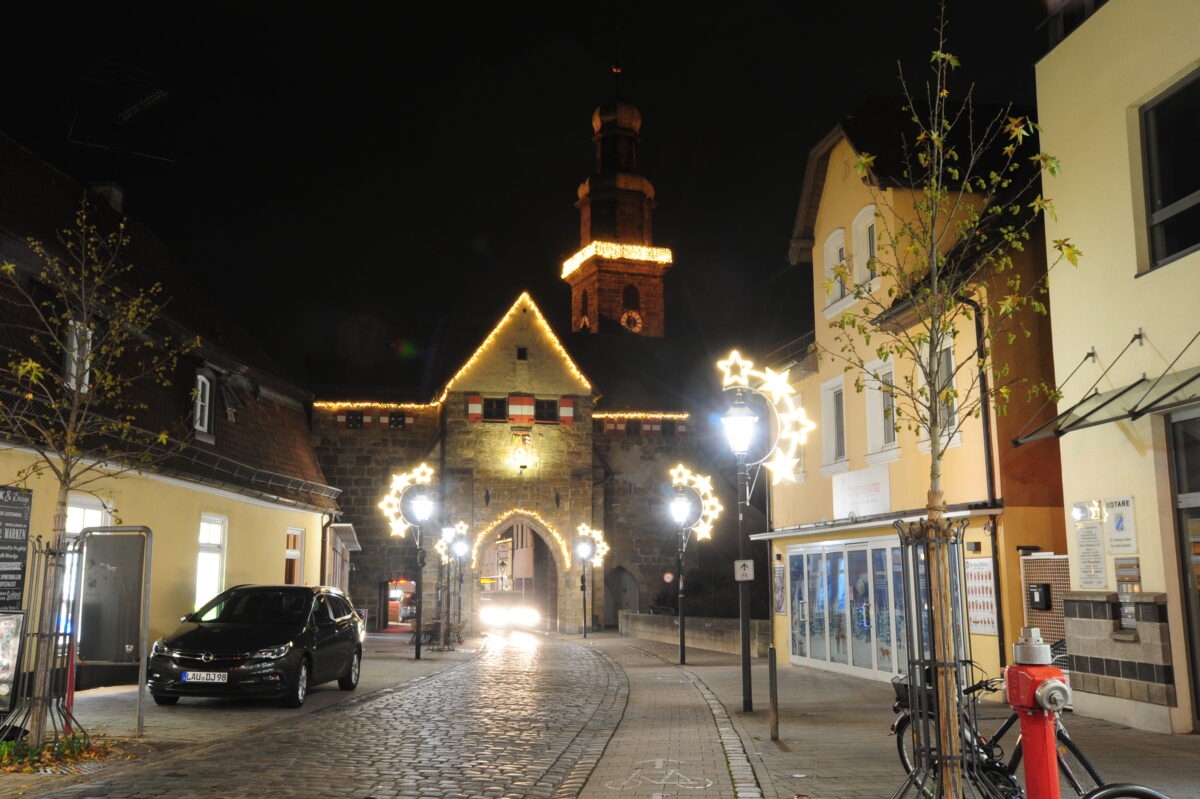 LAUF – Lichterketten entlang der Dachgiebel, Sterne an den Straßenlaternen und ein leuchtender Tannenbaum vor dem Hersbrucker Tor – in Lauf erfreut die neue Weihnachtsbeleuchtung seit Donnerstagabend die Besucher der Altstadt und schafft Adventsstimmung.