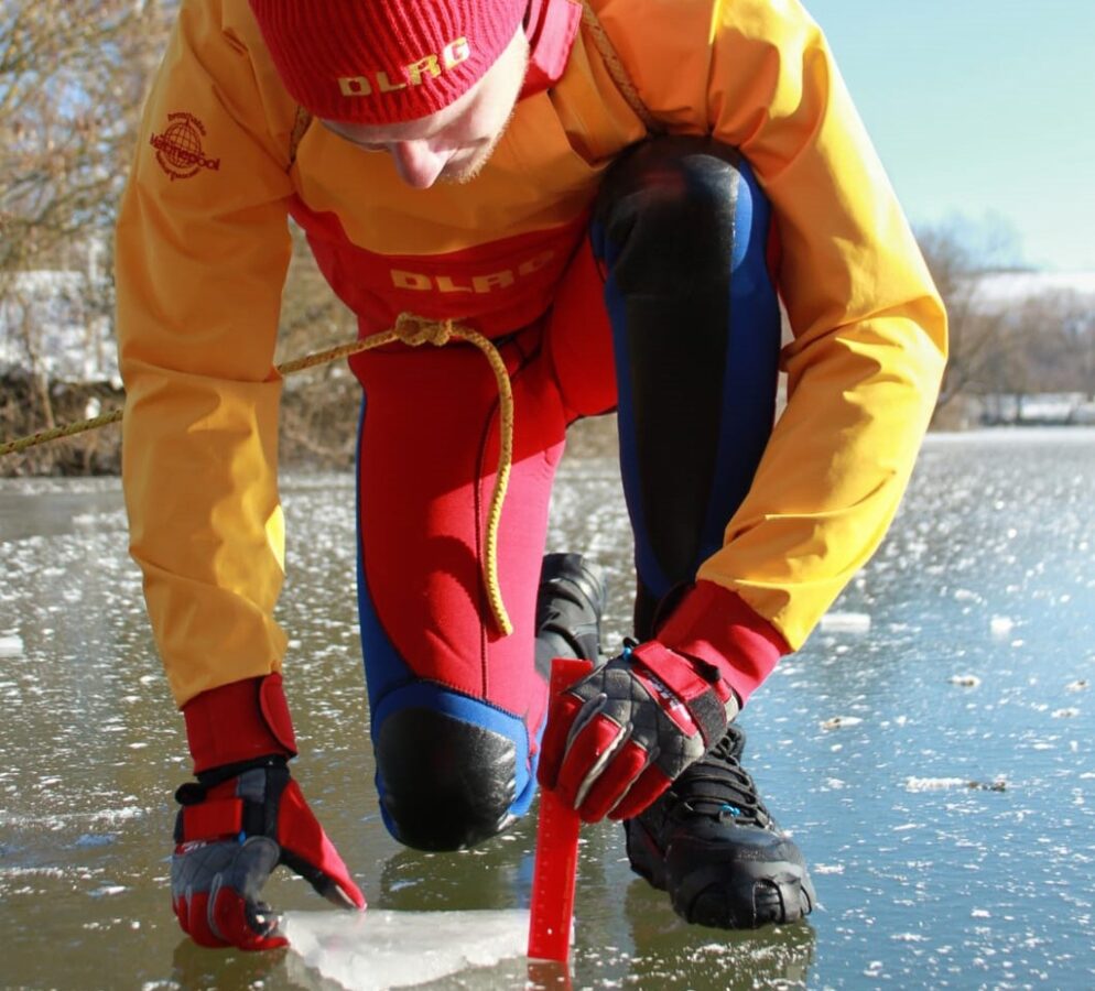 Ein Knistern oder Knacken beim Betreten der Eisschicht sei ein letzter Hinweis dafür, dass die Tragkraft des Eises nicht ausreicht. „Bei Einbruchgefahr auf die Eisfläche legen und so das Gewicht verteilen“, rät die DLRG. Bevor man sich auf das Eis wagt, empfiehlt es sich, nach geeigneten Rettungsmitteln am Ufer Ausschau zu halten, zum Beispiel Stangen oder Äste. Diese sollten gut sichtbar an einem sicheren Platz bereitgelegt werden. Bricht man doch in das Eis ein, verbleibt nicht viel Zeit, um sich selbst aus dem frostigen Wasser auf die Eisfläche zu retten. „Binnen weniger Minuten tritt eine Unterkühlung ein, das eiskalte Wasser verursacht starke Schmerzen und die Kräfte für eine Selbstrettung schwinden sehr schnell. Außerdem bedeutet Unterkühlung im eisigen Wasser fast immer Lebensgefahr“, schreibt die DLRG.