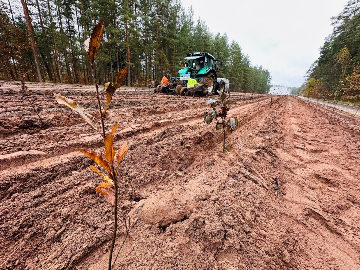 Für das Erfüllen der Auflage einer Ausgleichspflanzung im Zuge des Ersatzneubaus Wichernhaus waren die Verantwortlichen auf der Suche nach einem möglichst zusammenhängenden Grundstück – welches im besten Fall noch im Gemeindegebiet Schwarzenbruck liegt. Fündig wurde man bei Kurt und Renate Schrödel, mit denen man sich einigte, die zwei Flurstücke in unmittelbarer Nähe der Kläranlage für diesen Zweck zu nutzen. Der neue Wald wird zu 70 Prozent aus Eichen und zu 30 Prozent aus Nebenbaumarten wie Hainbuche, Winterlinde, Vogelkirsche oder Esskastanie bestehen. Aufgrund der trockenen Bodenverhältnisse kommen bevorzugt Trauben- und Stieleichen zum Einsatz. Insgesamt rund 6000 Setzlinge werden dafür gerade auf der Fläche entlang der ehemaligen Freileitungstrasse eingebracht, die nun im Flächennutzungsplan von Ödland in Waldfläche umgewandelt wurde.