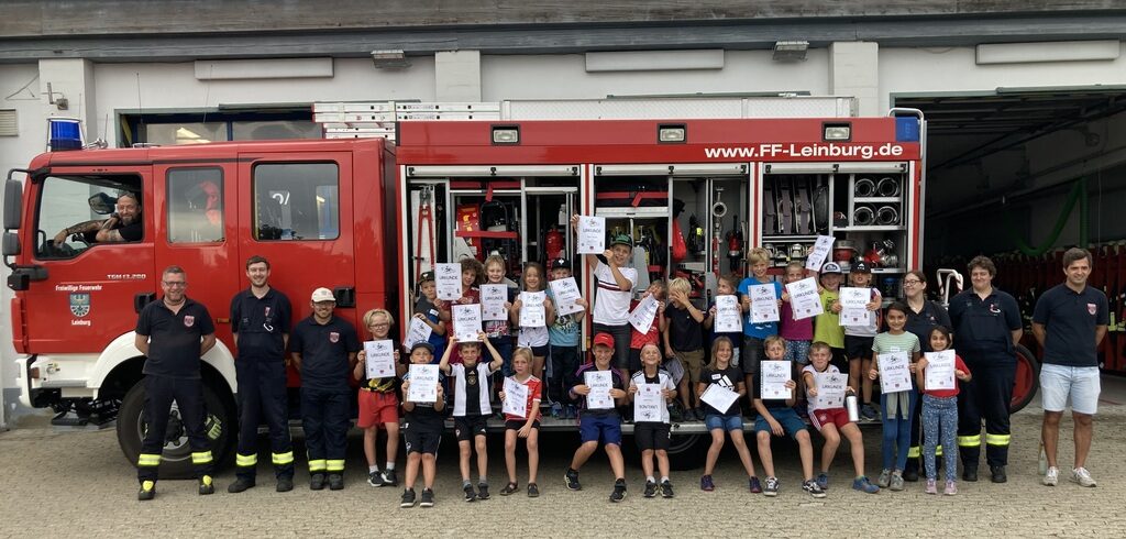 LEINBURG – Die Freiwillige Feuerwehr in Leinburg hat im August 24 Mädchen und Jungen zu einem bunten Kinderferienprogramm empfangen. Bei Spiel und Spaß wurde viel geboten, unter anderem wurde Zielwerfen mit einem Leinenbeutel geübt oder spielerisch Becher mit dem Spreizgerät gegriffen.