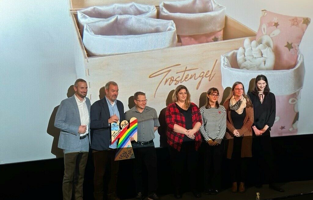 Inhaber von Blank Bestattungen in Hersbruck und Geschäftsführer von Scharfs „Trostengel.shop“, David A. Blank, lud Bestatter aus der Metropolregion Nürnberg und den angrenzenden Landkreisen ins Cinecittà ein, um über das Trauerritual „Trostengel“ zu informieren und gemeinsam – passend zum Beruf – den Film „Wer gräbt den Bestatter ein“ anzuschauen. Mit knapp 50 Gästen war der Kinosaal gefüllt, stilecht mit Popcorn, Nachos und Getränken.