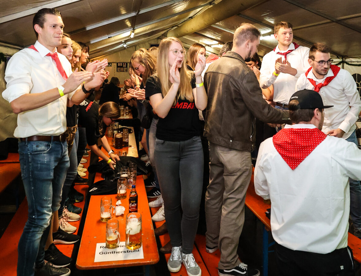 Laufs Bürgermeister Thomas Lang, der den Bieranstich mit Wiethaler-Braumeister Andreas Dorn übernahm, und Landrat Armin Kroder freuten sich ebenfalls sichtlich, wieder miteinander feiern zu dürfen und lobten die Leistung der Günthersbühler Kirchweih-Burschen und -Madla, die in so kurzer Zeit so viel auf die Beine gestellt zu haben. Unter den Gästen befanden sich eine Reihe von Stadträten sowie Mitglieder von benachbarten Kirchweihvereinen.
