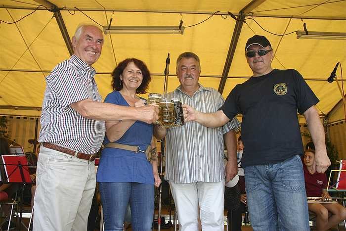 FEUCHT – Wenn 26 Vereine und die Gemeinde sich richtig ins Zeug legen, dann ist das die Garantie für ein gelungenes Fest. In Feucht hat es wieder einmal geklappt. Als Bürgermeister Konrad Rupprecht zusammen mit seiner Vertreterin Katharina von Kleinsorgen und den beiden Organisatoren Dieter Schönknecht und Ulli Lang am Samstagnachmittag den offiziellen Startschuss für das Bürgerfest gab, hatte sich bereits zahlreiches Publikum im Zentrum Feuchts versammelt und freute sich auf einen kurzweiligen Nachmittag und einen langen Abend. Das Wetter spielte über weite Strecken mit, kurzzeitige Schauer konnten den Feuchtern die gute Laune nicht verderben.