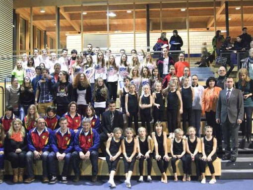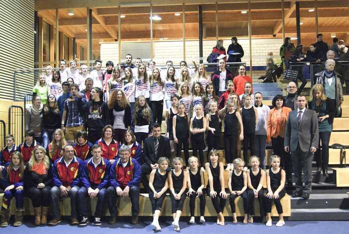 Die Pausen zwischen den Ehrungen nahmen die Jungs und Mädels des Turner- und des Kindergruppen-Wettstreits zum Anlass, unter Federführung von Sabine Dingfelder die Zuschauer in ferne Länder mitzunehmen. Im liebevoll gebauten Flugzeug des TSV Feucht ging es von Moskau bis nach Singapur, weiter ins ferne Honolulu und die USA. Vom bequemen Fliegersitz sah sich das Team die Gepflogenheiten der jeweiligen Kultur näher an, die via Tanzeinlage akrobatisch dargestellt wurden. Als schließlich die Flugbegleiterin die frohe Botschaft verkündete „Wir landen“, war die Erleichterung dennoch groß. Allerdings nur für kurze Zeit. Die Mitteilung „Es ist eine Bruchlandung“ brachte die Besatzung im wörtlichen Sinne ins Straucheln – und das Publikum ob dieses gelungenen Abends zum Applaudieren. Die Schirmherrschaft und das Sponsoring hatte Klaus Bothmann vom Hagebaumarkt übernommen, die Gesamtorganisation der Veranstaltung wurde vom Vorsitzenden des TSV Feucht, Klaus Schoderer, unterstützt.