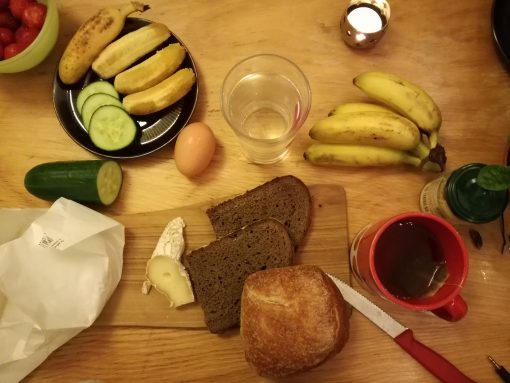 Noch weht eine angenehm kühle Brise durch die offene Balkontür. Auf dem Küchentisch stehen Bananen, Brot, Erdbeeren, Gurken, ein gekochtes Ei, Käse, Wasser und Tee: Sieht lecker aus. Aber hungrig bin ich noch nicht. Erstmal Fotos machen: Auf der Facebook-Seite des Boten berichte ich live: „Selbstversuch #Ramadan…“ Während ich meinen heißen Tee schlürfe und ein sachter Schimmer über die Dächer dämmert erwachen die Vögel: Wow! Wann habe ich diesen Gesang das letzte Mal gehört? Fast fünf zeigen die roten Uhrzahlen am Herd, als ich mich endlich losreiße. Zurück ins Bett!