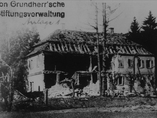 Bei einem verherenden Fliegerbombenangriff auf Feucht im April 1943 war die Front des Weiherhauses komplett zerstört worden sowie Teile des Dachs und der Decke im Erdgeschoss. All das hatte die Familie mit den damals vorhandenen Mitteln repariert: Aus dem Balkon im ersten Stock hatte man notdürftig ein Fenster gemacht, der Giebel im Dach wurde eingespart. Auch die Decke in Teilen des Erdgeschosses war zu Kriegszeiten nicht historisch korrekt nachgebaut worden.