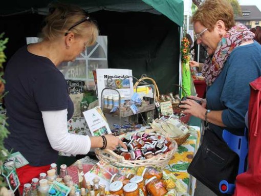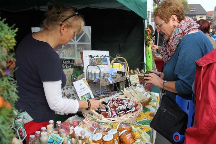 Besonders zahlreich sind die Stände von regionalen Biobauern. Dort können die Besucher Käse, Wurst, Äpfel, Eierlikör, Nudeln, Holzofenbrot, Aufstriche oder Joghurt kaufen. Der Obst- und Gartenbauverein Winkelhaid bietet selbst gepressten Apfelsaft an, gleich daneben hat der Verein für Gartenbau und Landschaftspflege Nürnberger Land seinen Stand. Dort gibt es selbstgemachte Kartoffelchips zum Probieren und eine Auswahl regionaler Kartoffelsorten zu bestaunen.