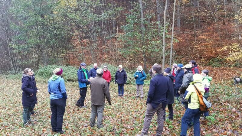Die Teilnehmer lauschten den Ausführungen von Rainer Wölfel. | Foto: I. Pflaum2021/11/Exkursion-2-Hutanger-7.11.21-Foto-Ingrid.jpg