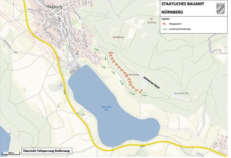 Das Staatliche Bauamt Nürnberg bittet alle Wanderer um Verständnis für die Beeinträchtigungen während der Bauzeit und um zwingende Beachtung der Sperrungen. Aufgrund des Steilhanges und der äußerst beengten Platzverhältnisse würden sie bei Nichtbeachtung sowohl sich als auch die Arbeiter auf der Baustelle gefährden.