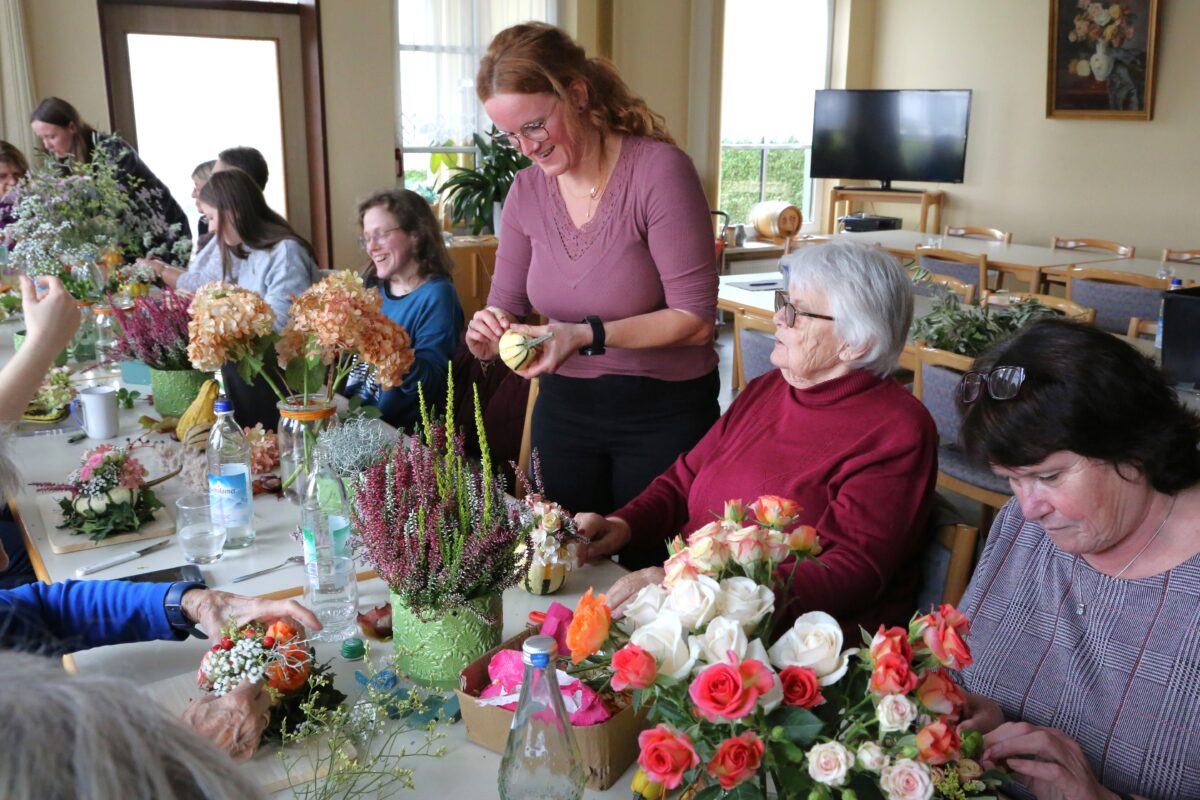 Den Kürbiskern ersetzte danach ein Schwamm, der für die Feuchtigkeit der Pflanzen sorgte. Kleine Rosen, Olivenzweige, Schleierkraut, Hortensienblüten und viele Beerenarten wurden zur Dekoration gesteckt, so entstanden kleine Kunstwerke.
