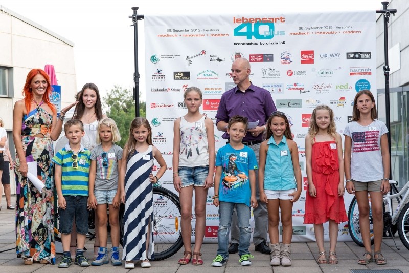 Cinzia Loli und Moderator Martin Cernan mit den Kindermodels. Foto: Konetzka, cre-A-team fotodesign/sw (1).
