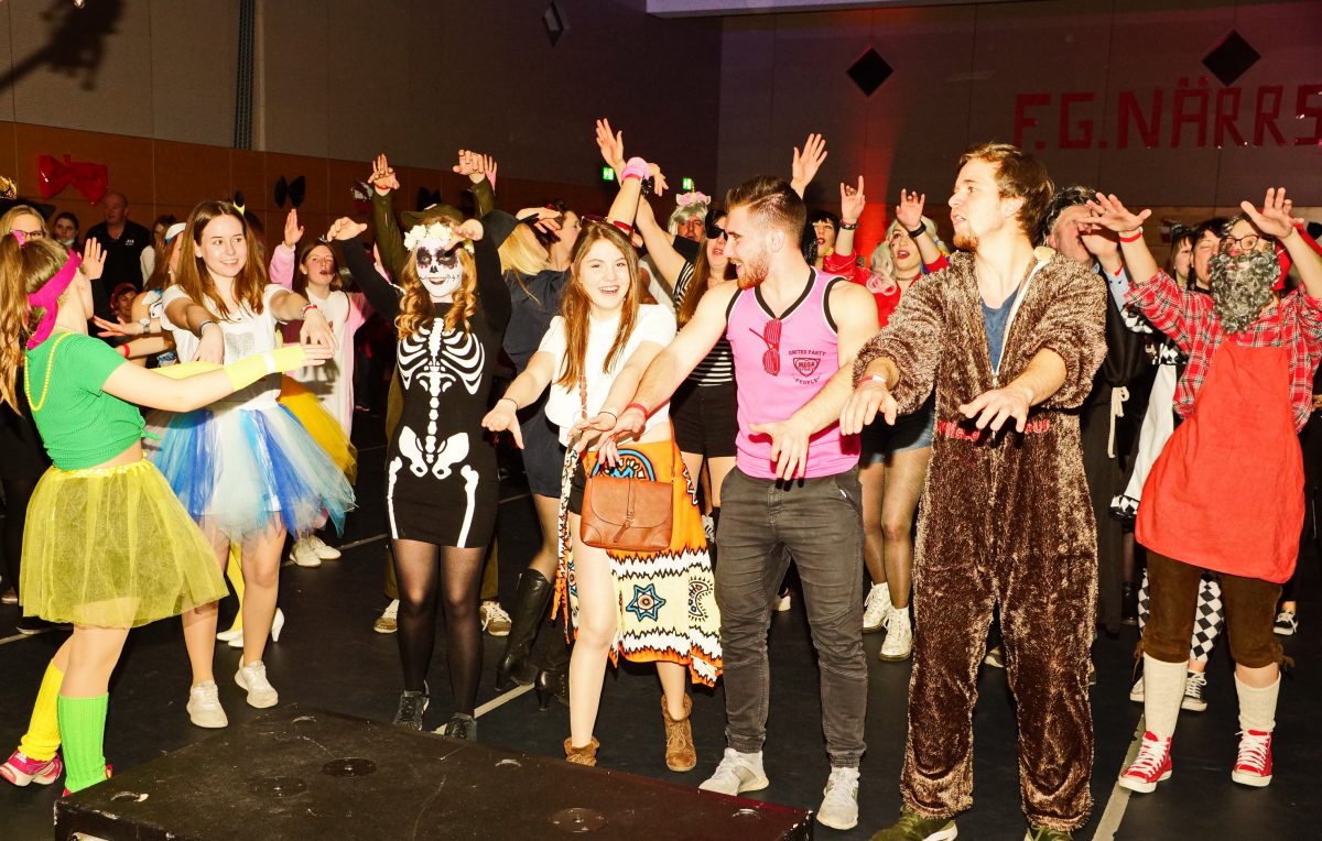 Den Job des DJs übernahmen abwechselnd die Damen der Prinzengarde. Das „Fliegerlied“, „Cotton Eye Joe“ und andere unvermeidliche Fetenhits durften natürlich nicht fehlen. Ebenso wenig wie das lustige „Schokoschaumkuss-Essen“ und die „Reise nach Jerusalem“ – die wegen des großen Interesses zwei Mal durchgeführt werden musste.
