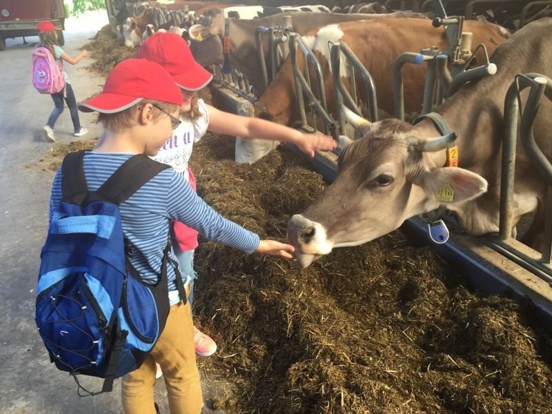 „Tierisch was los“ war das Motto beim Ausflug der Klassen 2a und 2c. Mit der S-Bahn ging es nach Henfenfeld zum Bauernhof der Familie Scharrer. Dort empfing die Kinder bereits das laute „Muhen“ der Kühe. Die Schüler erfuhren Wissenswertes über den Bauernhofalltag. Besonders begeistert waren sie von der Leckerli-Maschine und dem Massagegerät.