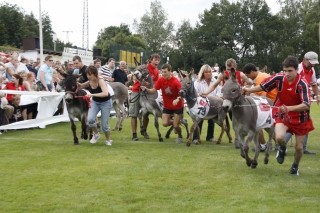 Schon in den ersten der fünf Vorläufe mit Grautieren aus der ganzen Region zeigte den besonderen Reiz des Hersbrucker ,Ascots der Esel“: einigen Hochleistungseseln machte die Hitze offenbar zu schaffen, so dass sie mit ,Getriebeschaden“ liegen blieben; Da half manchmal nicht einmal mehr das eigentlich untersagte Möhren-Doping, sondern nur Sonderapplaus des begeisterten Publikums oder wenig liebevolles Schieben und Zerren. Anderen Treibern dagegen kam der eselige Staffelstab, der in den vier Runden an den nächsten Läufer möglichst unfallfrei übergeben werden muss, gar ganz abhanden oder sie kapitulierten mit Stürzen vor dessen Schnelligkeit.