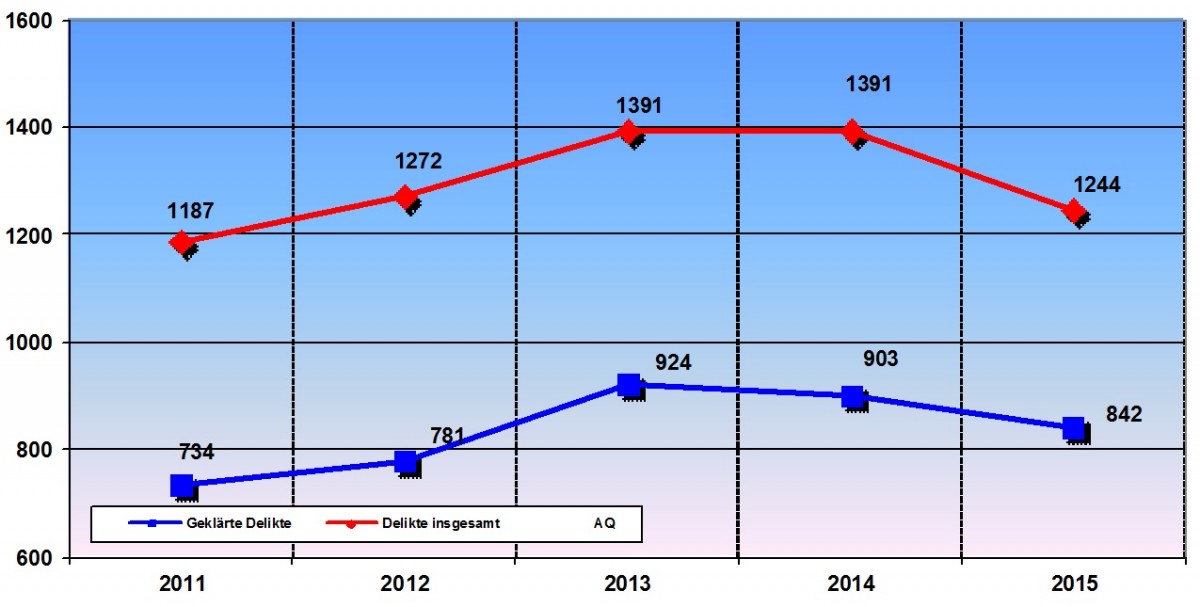 Etwas einfacher haben es die Ermittler beim Ladendiebstahl, der erheblich von 49 auf 70 Fälle angestiegen ist und sich auf Hersbruck und das Hohenstädter PEZ konzentriert. Mehr Ladendetektive, ein sensibilisiertes Verkaufspersonal und einige „bekannte Täter“ treiben nicht nur die Rate in die Höhe, sondern erleichtern auch die Aufklärungsarbeit der Beamten, die 2015 fast 70 Prozent aller Kriminalfälle klären konnten (+2,8 Prozent).