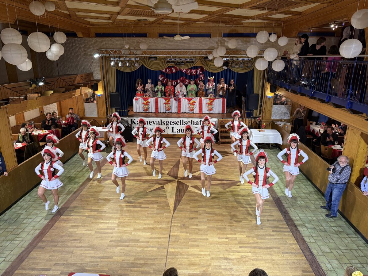 Die Marschtänze der Kindergarde, Junioren, der Laufer Schlossgarde und die Auftritte der Tanzmariechen Nika Littau, (Kindergarde), Nina Zlamal (Junioren) und Amelie Hufsky, sowie des Junioren-Duos Ella Menhorn und Sophie Müller demonstrierten das Können der jungen Tänzerinnen.