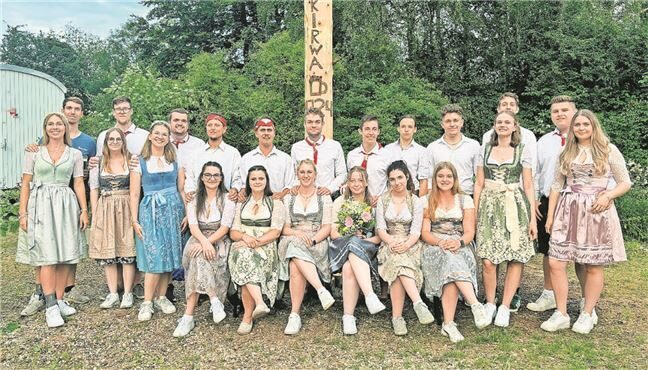 Nachdem das Loch für den Baum gegraben, der Baum mit Schnitzereien verziert und die Kränze gebunden waren, konnte dann tags drauf das „Wahrzeichen“ der Kirchweih aufgestellt werden. Eine wahre Kraftanstrengung sollte es werden. Bei sehr sommerlichen Temperaturen wurde der stattliche Kirchweihbaum mit seinen 31 Metern mit viel Schubkraft in die Höhe gebracht. Am Abend schwangen die Kirwaleut’ im Festzelt zur Musik von Manuel Hartmann kräftig das Tanzbein und sangen das ein oder andere Kirwalied.