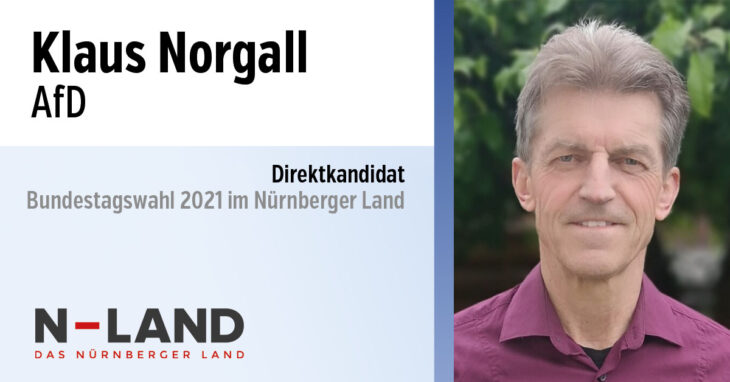 Ich bin 67 Jahre alt, verheiratet, habe fünf Kinder und wohne in Feucht. Seit 2020 bin ich Kreisrat im Nürnberger Land. Ich war 12 Jahre Zeitsoldat, danach im höheren technischen Dienst beim Verteidigungsministerium und später beim Fernmeldeamt in Nürnberg tätig. Privat bildete ich mich in Philosophie, Politikwissenschaft und Psychologie weiter. In der AfD bin ich seit drei Jahren Kreisvorsitzender und Beisitzer im Bezirksvorstand. Ich will mich dafür einsetzen, Eigenverantwortlichkeit und Selbstbestimmung Wirklichkeit werden zu lassen.