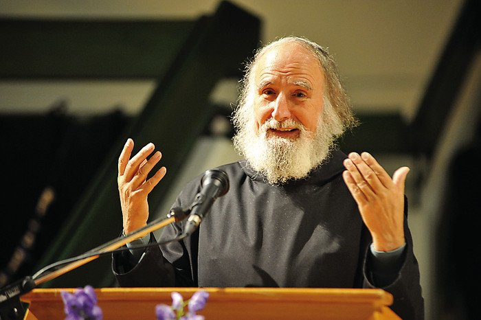 Eine eigene Fernseh-Talkshow hat der 65-jährige Benediktinerpater aus Münsterschwarzach zwar noch nicht, ein Medienstar ist er allemal. Selbst „Bild online“ veröffentlichte bereits die „zehn besten Wege zum Glück“ von „Deutschlands bekanntestem Mönch“. Doch wie ein Profi-Speaker tritt er nicht auf: kein Power-Point, keine Videofilme, keine Flipchart-Skizzen, kein Puppenspiel. Anselm Grün stellt sich in seinem schwarzen Mönchsgewand schlicht hinter das Mikrofon und spricht, ohne Vortragsattitüde, fast, als befände er sich in einem Vieraugengespräch.