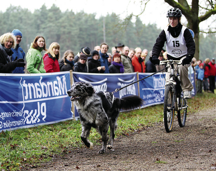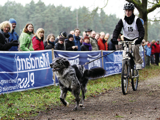 SCHÖNBERG (pb) — Als Publikumsmagnet hat sich einmal mehr das Schlittenhunderennen in Schönberg erwiesen. Über 2000 Zuschauer waren nach Angaben des Veranstalters am Samstag und am Sonntag vor Ort, um sich die schnellen Vierbeiner auf der Rennstrecke anzusehen. Der gute Publikumszuspruch in Verbindung mit dem für diesen Sport optimalen Wetterbedingungen sorgte beim Veranstalter, dem Fränkischen Schlittenhunde Sportclub (FSSC), für zufriedene Gesichter, auch wenn am Samstag ein Unfall den Zeitplan durcheinander brachte. Einer der ersten Starter, der mit Mountainbike und zwei Hunden unterwegs war, stürzte auf der Strecke und musste mit Verdacht auf Schlüsselbeinbruch mit dem Krankenwagen in die Klinik gebracht werden. Ansonsten ging das Rennprogramm problemlos über die Bühne. Mit 85 Startern waren dem allgemeinen Trend entsprechend etwas weniger Teilnehmer gekommen als in früheren Jahren; auch gab es weniger „große“ Gespanne (wie im Bild rechts das von Arno Steichler) zu sehen. Stattdessen wagten sich mehr Läufer und Radfahrer (im Bild links Jessica Ströbele) mit ein oder zwei Hunden auf die Strecke, unter ihnen auch eine Reihe von Kindern, die nur die Hälfte der fünf Kilometer langen Renndistanz zurücklegen mussten. (Ein ausführlicher Bericht folgt in einer der nächsten Ausgaben.)