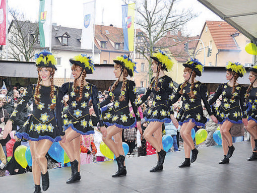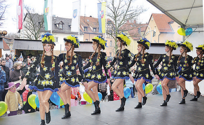 RÖTHENBACH/LAUF — Es war am Sonntag nicht gerade das Traumwetter, um Faschingsfans ins Freie zu locken. Auch gab es mit dem Nürnberger und dem Happurger Faschingsumzug einige Konkurrenz. Dafür waren die jeweils knapp 200 Narren, die den Vorführungen der Röbanesia am Röthenbacher Rathausplatz und der Hilaritas am Laufer Marktplatz folgten, eine ganz gute Zuschauerzahl. Beide Vereine boten ihr gesamtes Programm auf, von den „Zwetschgerla“ beziehungsweise „Wuzzerla“ bis zur „Blaidlkompanie“ beziehungsweise dem Männerballett. In Röthenbach standen etwa 80 Tänzer, Präsidenten und sonstige Entertainer auf der Bühne, in Lauf waren es um die 60. Es fehlten nicht die Tanzmariechen, die Aktivengarden (rechts im Bild die der Röbanesia) und auch nicht Schautänze zum Beispiel mit Bienen (das Bild unten zeigt die Hilaritas-Kindergarde) oder Gelegenheiten zum Schunkeln. Während die Röbanesia nur einen Tag die Narrenhüte schwenkt, war es für die Hilaritas nur der Auftakt. Schon am Montagnachmittag wird sie verstärkt von der Röbanesia und dem Spielmannszug der Laufer Schulen, am Faschingsdienstag spielt Entertainer Tobias Klaus von den Steiner Schlossgeistern. Fotos: Scholz