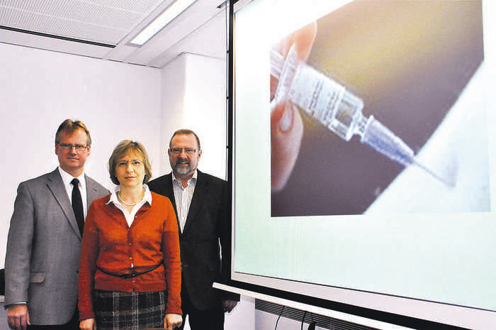 Sie setzen sich dafür ein, den Impfschutz im Landkreis zu verbessern: Hanspeter Kubin, Beate Hildebrandt (beide vom Landratsamt) und Kinderarzt Roland Ulmer (von links) Foto: Müller2014/03/79423_LandratsamtImpfsprechstunde_New_1395999965.jpg