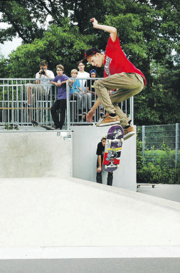 Kevin Fritsche siegte sowohl beim „Single Run“ der Gruppe A (vor Moritz Spathelf und Dominik Maul) als auch beim „Game of Skate“, wo er sich am Ende gegen Fabio May durchsetzte. In der Kategorie B der unter 15-Jährigen gewann Kevin Lutsch im „Single-Run“ vor Michael Gräf und Lukas Kerris. Nach dem Contest durfte im Juz bei der Aftershow-Party mit den Bands „Konrad48“ und „Cotton Candy“ gefeiert werden. Fotos: Hanisch