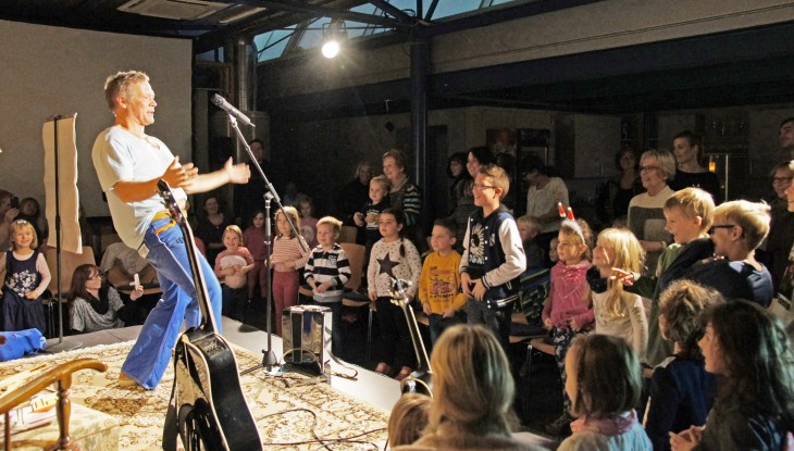 Besonderen Witz erhalten die Geschichten durch die absurden Momente. Das Schwein, das an der Tankstelle aus Versehen vollgetankt wird, oder Omas Dackel, der im Cabrio Musik hört und sich im WC Früchtetee macht, könnten direkt der bunten Vorstellungswelt von Kindern entspringen. Junge wie ältere Zuhörer klatschten und sangen bei den mit viel Wortwitz und Reimen angereicherten Songs vergnügt mit. Der Wechsel der Instrumente – Geraldino spielte Gitarre, Akkordeon, Ukulele und Mundharmonika – machte die Vorstellung noch kurzweiliger.