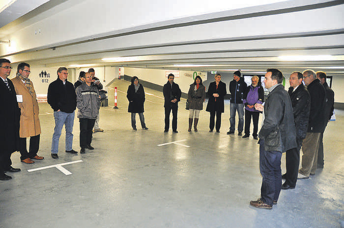 Schon in dieser Woche machte sich der Laufer Bauausschuss bei einem Ortstermin ein Bild vom „neuen“ Laufer Parkhaus. Und die Räte unter der Führung von Bürgermeister Bisping zeigten sich angetan von dem, was Generalplaner Veit Bräuning vom gleichnamigen Büro ihnen präsentierte. Das 30 Jahre alte Parkhaus erstrahlt tatsächlich in neuem Glanz. Hell ist es in den hallenartigen stützenfreien Parkebenen. Unterschiedliche Farben und eine übersichtliche Beschilderung führen den Autofahrer durch das Haus. Vor allem aber fällt auf, dass die meisten Parkplätze viel breiter als früher geworden sind, 30 davon sogar im drei Meter breiten XXL-Format als Familienparkplätze ausgewiesen werden konnten. Ein Wermutstropfen dabei ist allerdings, dass mit noch 187 Stellplätzen jetzt 30 Autos weniger als früher Platz finden.