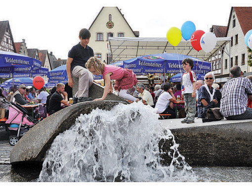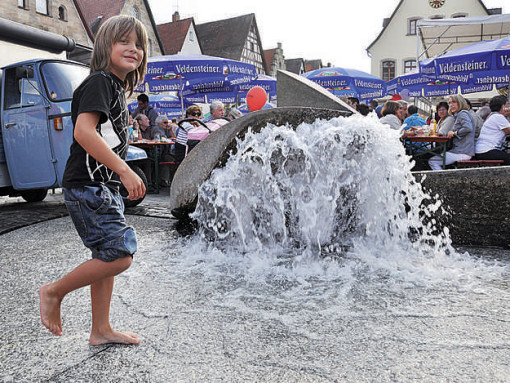 Dieses Jahr passte alles. Es war diesmal sogar warm genug, dass die Eltern ihre Kinder bedenkenlos im großen Brunnen plantschen lassen konnten. Die Angebote von Händlern zusätzlich zu den vielfältigen Aktionen der ansässigen Geschäfte ergänzten das Gesamtbild, auch der Untere Markt war gut mit eingebunden. Für eine bodenständige Volksmusik sorgten die Spitzboum aus Kirchenreinbach, die auch für Ständchen die Bühne verließen.