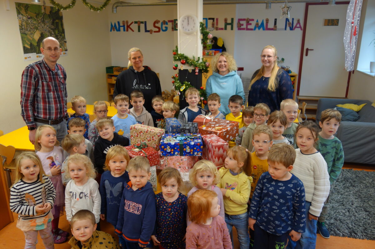 Einen anderen Schwerpunkt setzt das Kita-Team in Neunhof um die kommissarische Leiterin Nicole Tuchbreiter, das sich mit den Jahren zu Spezialisten für ältere Kundinnen und Kunden der Tafel gemausert hat. Vor allem werden lang haltbare Lebensmittel, Pflegeprodukte aber auch Süßigkeiten verschenkt. „In den Päckchen gibt es auch Lebensmittel, die man sonst bei der Tafel eher selten findet, erläutert Nicole Tuchbreiter. Durch die Mitarbeit von Eltern und Großeltern kamen in diesem Jahr wieder 40 Päckchen zusammen.