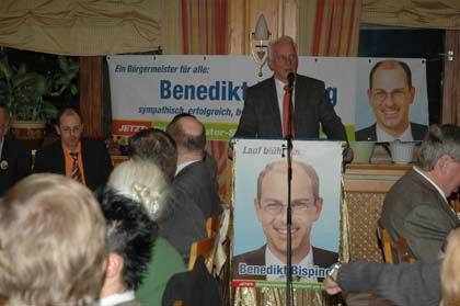 Schlitzohrig-humorvoll machte er Werbung für Bisping: Das Wahlergebnis in Lauf habe ihn überhaupt nicht überrascht, weil er schon gewusst habe, „dass die Laufer ned dumm san“. Den vor der Stichwahl noch Zögernden rief er zu: „Traut’s euch. Lauf kann gewinnen, wenn ihr den Besten zum Bürgermeister wählt, und der Beste in Lauf ist eindeutig der Benedikt.“