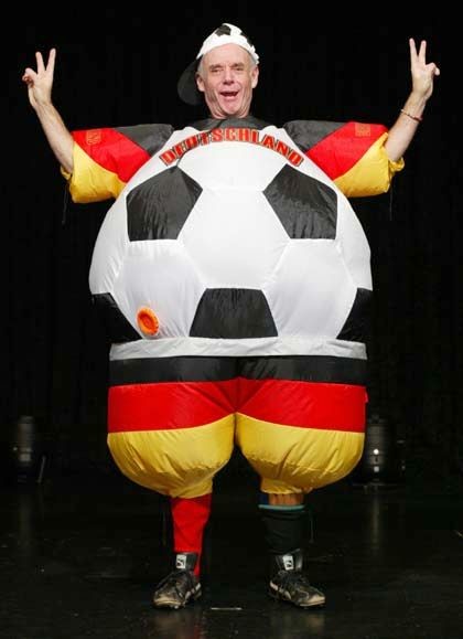 Nein, ich werde auch versuchen, Fußballmuffel diesen Sport näherzubringen. Es ist so etwas wie eine Gesamtschau aus meinen acht aktuellen Programmen. Da kommt auch die Hausfrau nicht zu kurz, die ihren Mann während der EM-Live-Übertragung fragt: „Stört’s dich, wenn ich bügel?“ Das macht die EM doch erst zum wahren Genuss, wenn sich ein Spieler das Knie hält und zeitgleich das Siemens-Eisen stöhnt.