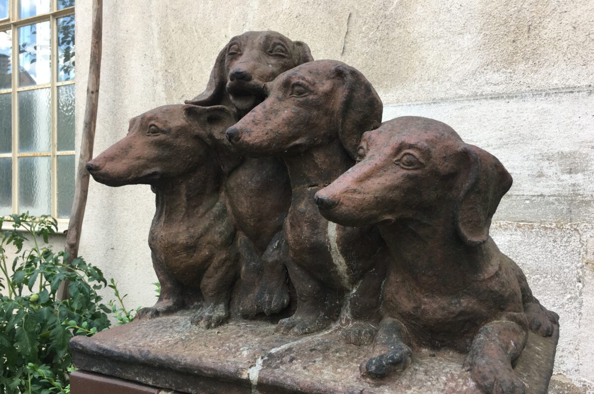 Für den musikalischen Spaziergang, den der Verein jetzt zum „Dackeldenkmal“ geplant hatte, war das Ziel indes keine Frage. Im Garten des Laufer Industriemuseums – die ehemalige Wirk- und Wohnstätte des Hugo Dietz – befindet sich das Entwurfsmodell des Denkmals im Maßstab 1:1.