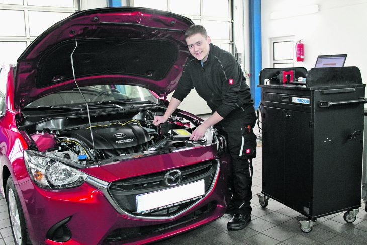Und wer könnte dies besser, kompetenter und auf die firmeneigenen Bedürfnisse abgestimmt leisten, als das Unternehmen selbst? Deshalb bildet Auto-Schwemmer schon immer selbst aus. Sascha Popp hat nicht nur seine dreieinhalbjährige Ausbildung zum Kfz-Mechatroniker erfolgreich bei Auto-Schwemmer absolviert, sondern sich gleich im Anschluss für die halbjährige Vollzeit-Meisterschule entschieden. Eine echte Win-win-Situation für den engagierten jungen Kfz-Mechatroniker-Meister und seinen Arbeitgeber.