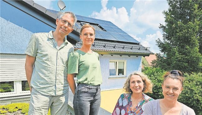 SCHNAITTACH – Hana Wiesflecker, Britta Poschner, Simona Markel und Michael Groß freuen sich über die neue Photovoltaikanlage (9,430 kWp) mit Speichertechnik (zehn kWh) auf der Südseite des Dachs der Caritas-Sozialstation in Schnaittach.