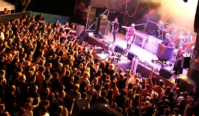 Gothic Rock aus Hamburg war dann bei „Mono Inc.“ angesagt. Die düstere Stimmung lockerte Sänger Martin Engler etwas auf, als er mittendrin zur Akustikgitarre griff und zusammen mit den Fans ein einfach gestricktes „Lalala“-Lied intonierte.