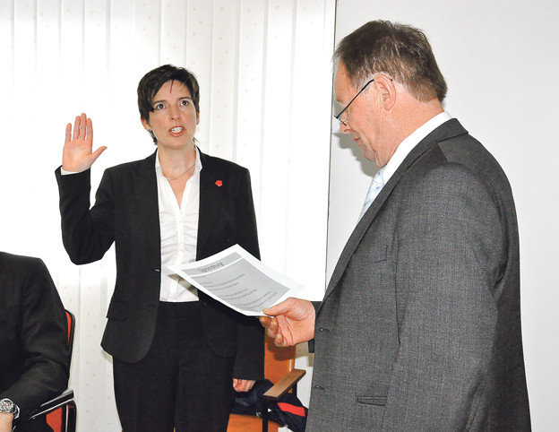 Der Ratsälteste Karlheinz Haberberger vereidigt Martina Baumann2014/05/baumann.jpg
