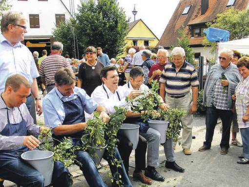 Der Landkreischef zeigte später seine Fingerfertigkeit beim Hopfenzupf-Wettbewerb, wo 2. Vorsitzender Gerhard Ott mit der Stoppuhr den schnellsten Pflücker ermittelte. Neben Andreas Tiedtke, Landtagskandidat FW, und Michael Groß, Bezirkstagskandidat SPD, beteiligte sich auch BBV-Präsident Günther Felßner, der mit 230 Gramm zum Schluss die meisten Dolden im Eimer hatte. Bei den Kindern siegte Cedric Polster mit 45 Gramm.