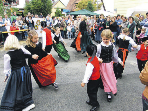Besonders schön anzusehen war wieder die Kindervolkstanzgruppe des Heimatpflegevereins Aurach aus dem oberen Altmühltal. Mit ihren stündlich vorgetragenen fränkischen Volkstänzen begeisterten sie die Zuschauer genauso wie die anderen Mitglieder der Brauchtumsgruppe mit alten Handwerkstechniken. In ihrer katholischen bäuerlichen Werktagstracht zeigte Martha Seis die Herstellung von Brotbacknäpfen aus Pfeifengras.