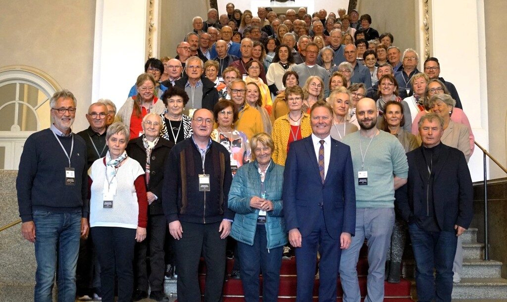 Landtagsabgeordneter Norbert Dünkel (vorne) mit seinen Gästen aus dem Nürnberger Land am Fuße der zentralen Treppe im Maximilianeum. | Foto: Büro Dünkel2024/06/Duenkel-Landtag.jpeg