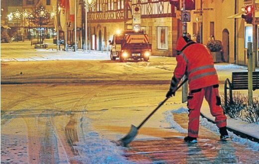 Frostig: Ein Mitarbeiter des Bauhofs befreit frühmorgens den Feuchter Marktplatz von Eis und Schnee. | Foto: Herbert Bauer2025/01/BauerHerbert.jpg