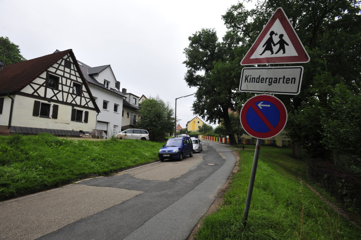 Verläuft der Gehweg vom Ortskern zunächst auf der Südseite, wechselt er hier auf die Nordseite der Straße. Überhaupt soll die umgestaltete Eichenhainstraße mehr Sicherheit für Eltern und ihren Nachwuchs bieten, die unterwegs in den Kindergarten sind. Deshalb gab es im Gremium auch einige Diskussionen darüber, ob die Bordsteinkante an der Kreuzung abgesenkt werden kann. Ein Problem ist nämlich, dass die Fahrbahn hier recht schmal ist – und durch einen rund 1,50 Meter breiten, gepflasterten Gehweg bald noch viel schmaler wird. Autofahrer tun sich mit dem Abbiegen in Richtung Lauf schwer, Lastwagenfahrer erst recht.