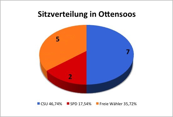 OTTENSOOS — Wechsel an der Spitze: Die CSU geht eindeutig als Sieger aus der Gemeinderatswahl in Ottensoos hervor – sie erkämpft sich zwei weitere Sitze. Dadurch ist die Partei künftig mit sieben statt fünf Räten vertreten. Die zuvor stärkste Fraktion der Freien Wähler (FWG) verliert einen Sitz von sechs auf fünf. Düster sieht es für die SPD aus: Die Partei muss sich nun mit nur zwei Räten zufrieden geben – sie verliert erneut ein Mandat.