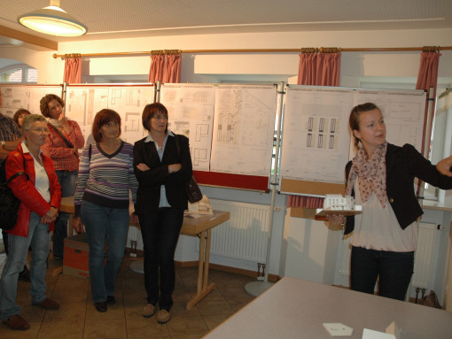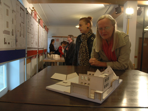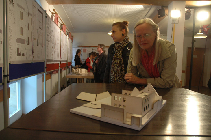 OTTENSOOS — Wie geht es weiter mit der Ottensooser Synagoge? Die bauliche Instandhaltung läuft auf Hochtouren, aber: „Die Synagoge ist ja mehr als ein reines Baudenkmal“, wie Bürgermeister Klaus Falk sagt. Bisher hat man, was die weitere Nutzung angeht, einen „bunten Strauß an vagen Ideen“, so Falk. Nun haben rund 50 Architekturstudenten der Nürnberger Georg-Simon-Ohm-Hochschule das Gebäude vermessen und weitere Vorschläge gemacht, wie man es nutzen könnte. Eine Entscheidungshilfe hat sich der Gemeinderat davon erhofft – das könnte im besten Sinne nach hinten losgegangen sein: Die zehn besten Entwürfe wurden im Bürgerbegegnungsraum vorgestellt und schnell war klar, dass die Entscheidung jetzt noch schwerer fallen könnte. Carina Ewalds Entwurf unter dem Titel „Kulturwinkel“ zum Beispiel greift relativ stark in die momentane Struktur der Synagoge ein. Sie plant zum Beispiel als einzige der besten Zehn mit traditionellen Rundbogenfenstern. „Der Putz wird entfernt, damit man die unterschiedlichen Strukturen sieht“, erklärte sie den interessierten Bürgern und den Gemeinderäten, die zur Präsentation gekommen waren. Das Tonnengewölbe im früheren Gebetsraum würde sie freilegen, dunkel streichen und hell verschalen. Den historischen Boden möchte sie erhalten und mit Glas abdecken, ebenso die Thoranischen – die Historie soll sichtbar bleiben. Die Räume sollen für die verschiedensten Gruppen nutzbar sein, „vom Seniorenflöten bis zum Kinderbasar“, so Carina Ewald. Ihre Kommilitonin Eva Meier zieht in ihrem Entwurf eine Art Zeltkonstruktion in den Gebetsraum ein; die Räume sollen mittels großer schwenkbarer Türen voneinander getrennt sein, damit man auch mal einen großen Gegenstand – beispielsweise einen Flügel für ein Konzert – bewegen kann. Außerdem ist bei ihr nur der bisherige Wohntrakt ständig beheizt, der Gebetsraum nicht – auch mit dem Thema Energieeffizienz sollten sich die Bachelorstudenten schließlich auseinandersetzen. Die Ausstellung der zehn besten Entwürfe – mit je vier Bauskizzen, einem Modell und einer Beschreibung – sind noch für die nächsten zwei Wochen im Bürgerbegegnungsraum zu sehen. Fotos: Ziegler